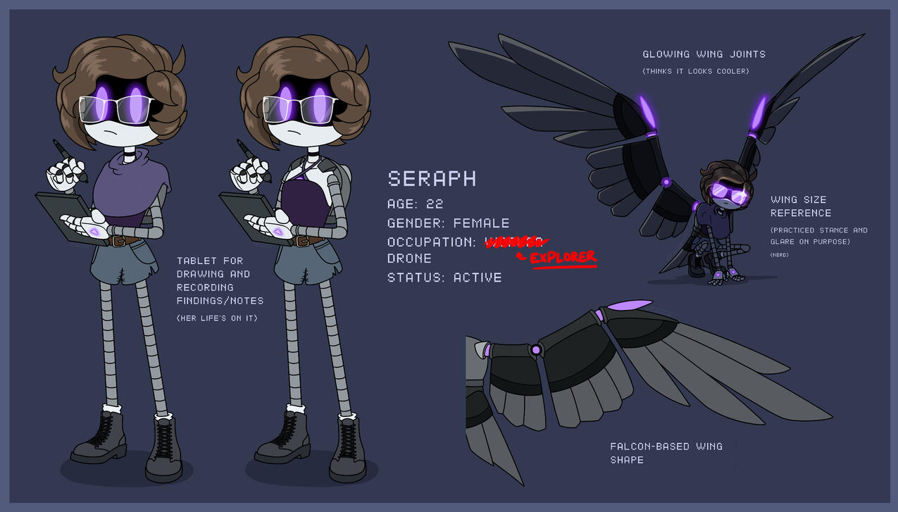 The Explorer Drone AU is a canon-compliant story featuring the addition of my own drone OC, Seraph! A young worker who modifies herself with wings and flees her home colony to explore Copper-9. In her explorations, she runs into Uzi, Thad, and N, getting herself a spot in Outpost 3 and a front row seat to the chaos about to unfold!